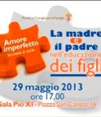Rendez-vous avec le deuxième des « Dialogues pour la famille » organisé par le Conseil pontifical pour la famille, Mercredi 29 Mai 2013, à partir de 17h00, Salle Pie XI (Piazza di San Callisto, 16), sur le thème : « La mère et le père dans l’éducation des enfants. L’amour imparfait ».